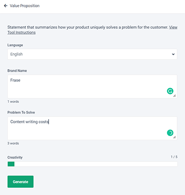 All you have to do is select a template based on what you want to create, enter some instructions, and Frase will do the rest.